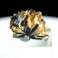 共生するヘマタイトから力強く飛び出したルチルは圧巻です。