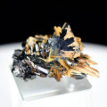 共生するヘマタイトから力強く飛び出したルチルは圧巻です。